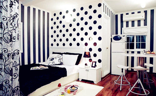 黑白配的房間很有現(xiàn)代感,但如果在房間內(nèi)黑白等比使用就會顯得很花哨,長時間在這種環(huán)境里會使人緊張、煩躁。