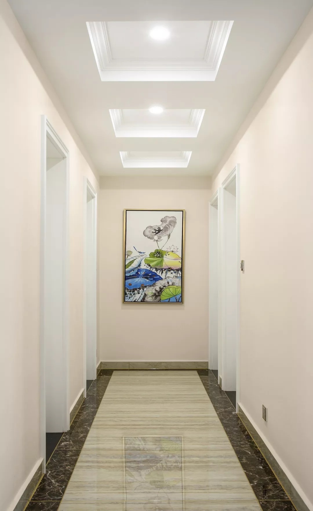 白色的踢腳線有木質(zhì)、PVC與瓷磚的,一般適合一些比較現(xiàn)代優(yōu)雅的空間搭配,比如選擇白色房門的空間,選擇白色的踢腳線整體視覺感就會(huì)更加和諧自然。
