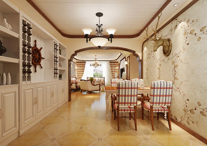 3、美式鄉(xiāng)村風(fēng)格主題思想就是回歸自然,溫馨舒適,一般墻面的色彩,采用自然懷舊褐色和黃色為基調(diào),棉麻,小搖椅,碎花布也是點(diǎn)睛之筆。