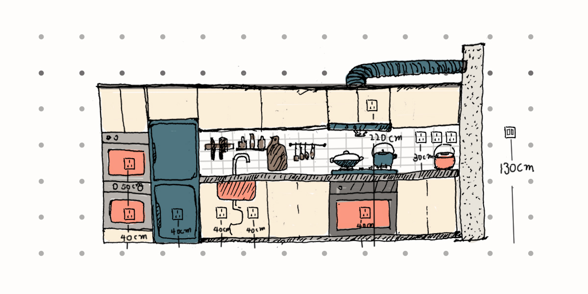 抽油煙機(jī)要留出1個(gè)插座的位置。高度離地面