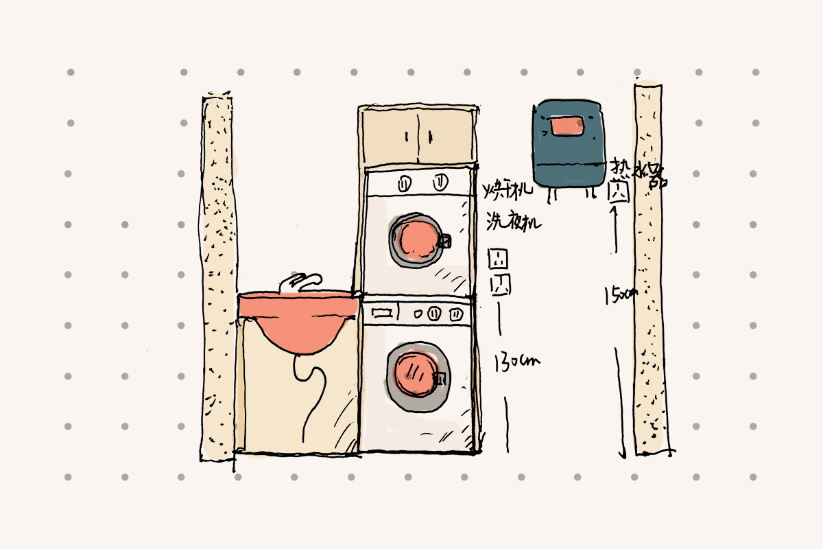 洗衣機(jī)和烘干機(jī)需要留出2個(gè)插座,高度離地面