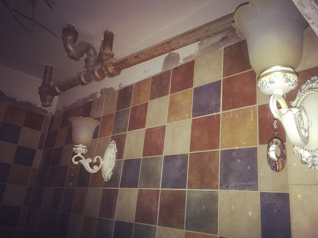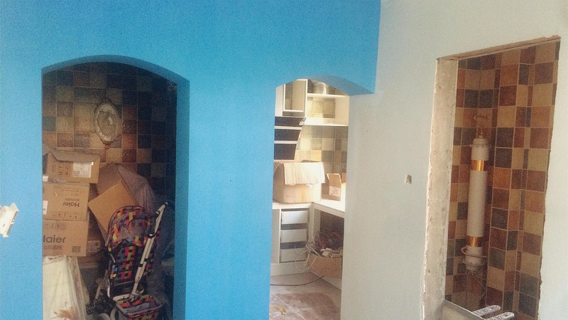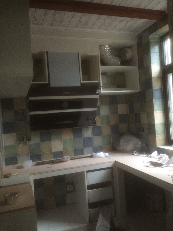 彎彎繞繞的管道看的真是頭暈眼花的,功夫不負(fù)有心人,水電師傅終于搞定了,也鋪上了我心心念念的地中海風(fēng)格的瓷磚,開(kāi)心~~